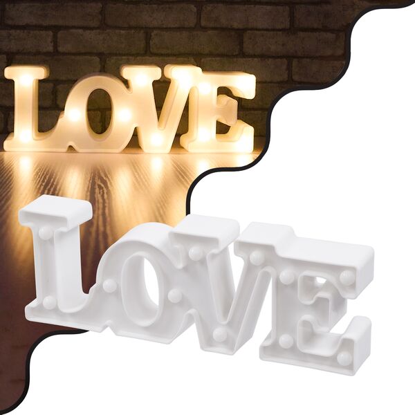 GloboStar® 76549 Λευκό Μοντέρνο Επιτραπέζιο Διακοσμητικό Φωτιστικό LED Σήμανσης LOVE 2W με Διακόπτη On/Off Μπαταρίας 2xAAA (Δεν Περιλαμβάνονται) Θερμό Λευκ