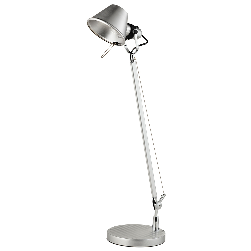 Πρόκειται για ένα μεταλλικό επιτραπέζιο φωτιστικό σε ασημί απόχρωση. Οι χρώμιο λεπτομέρειες του δίνουν τη λάμψη που χρειάζεται. Ο μεταλλικός βραχίονας κινείται όπως και το μεταλλικό καπάκι που κα&l