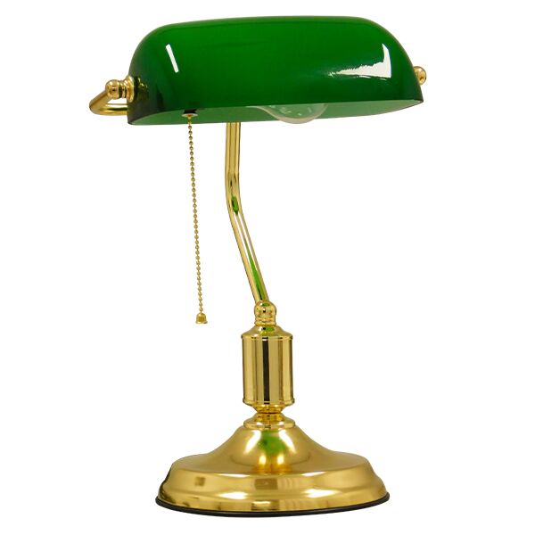 Vintage Επιτραπέζιο Φωτιστικό Πορτατίφ Μονόφωτο Μεταλλικό Χρυσό Μπρούτζινο με Πράσινο Καπέλο GloboStar BANKER GREEN 01391