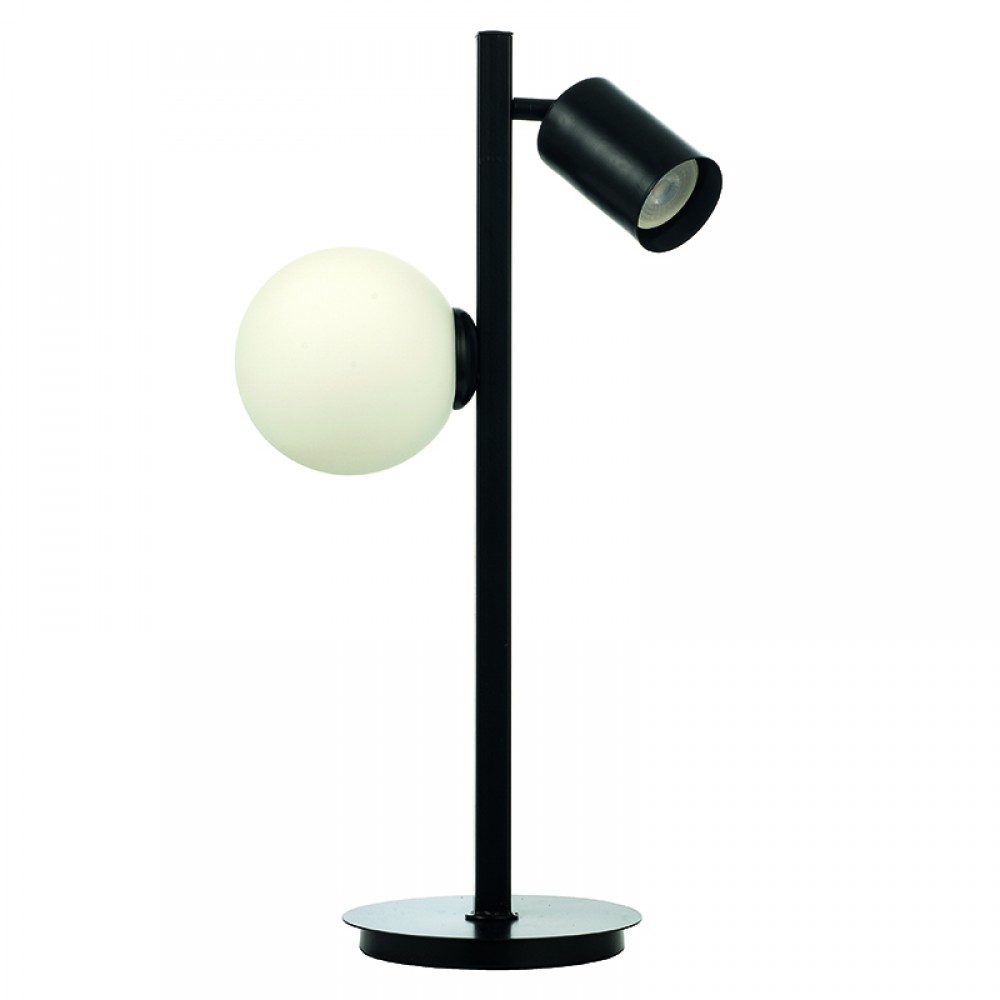 Πρόκειται για ένα μεταλλικό επιτραπέζιο φωτιστικό μαύρου χρώματος. Ο φωτισμός του είναι συνδυαστικός, αποτελούμενος από έναν λαμπτήρα διάχυσης καλυπτόμενος από λευκή οπαλίνα και έναν λαμπτήρα πιο εστιακό καλυπτόμενο από μεταλλικό καπάκι. Τοποθετείται σε μοντέρνους εσωτερικούς χώρους. Χαρακτηριστικά Αριθμός Λαμπτήρων 2 Βαθμός Προστασίας IP20 Λαμπτήρας 1xGU10, 1xG9 Με Λαμπτήρα Όχι Υλικό Κατασκευής Μέταλλο, Οπαλίνα Χρώμα Γυαλιού Λευκό Χρώμα Σώματος Μαύρο