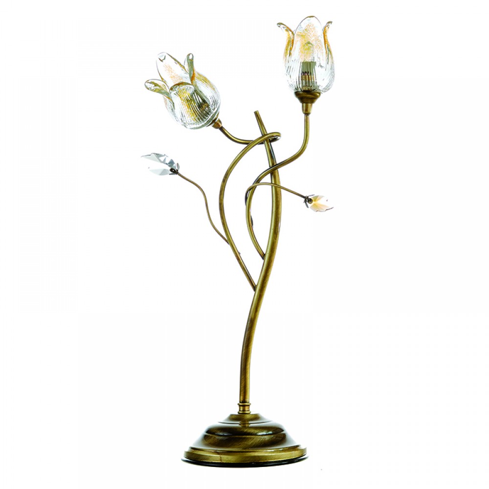 Πρόκειται για ένα οξυντέ μεταλλικό επιτραπέζιο φωτιστικό με δύο λαμπτήρες που καλύπτονται από μελί γυαλιά. Ο συνδυασμός διάφανων και μελί κρυστάλλων το διακοσμούν προσθέτοντας μια επιπλέον λάμψη. &Delta