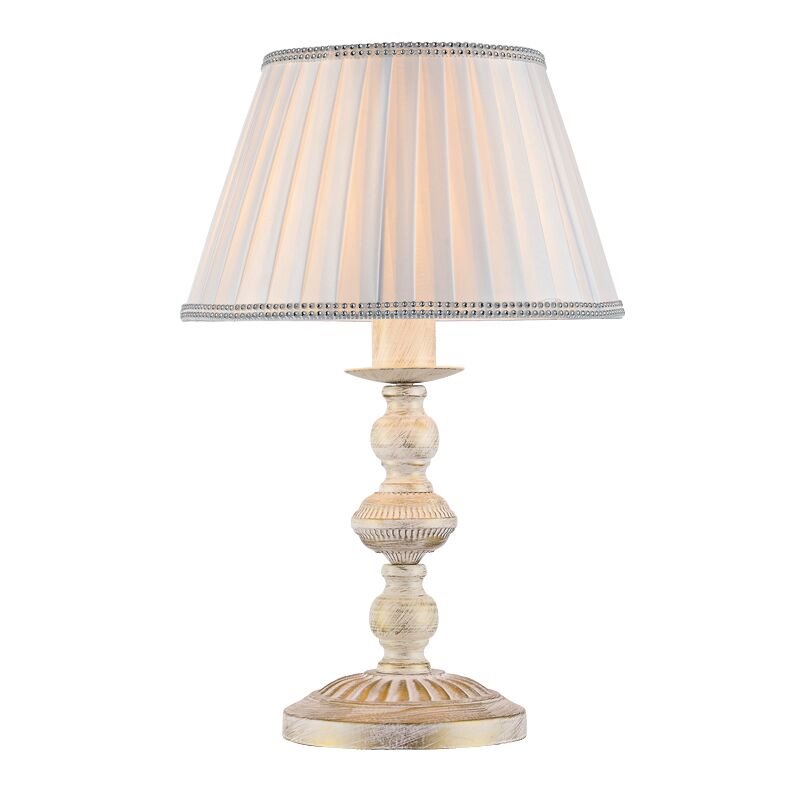 Λαμπατέρ Επιτραπέζιο Πατίνα / Λευκό Υφασμάτινο Αμπαζούρ με σιρίτι ζιργκόν ACA Dijon DL7611Τ
