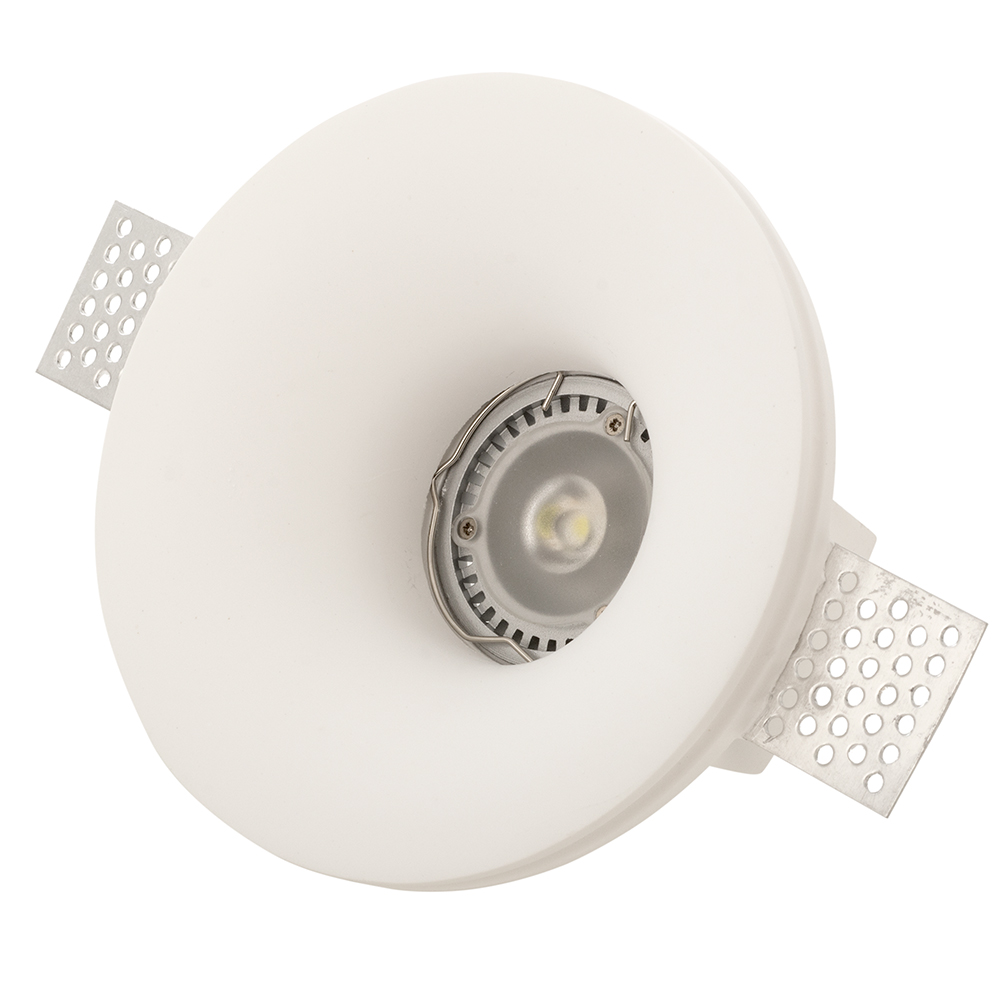 Χωνευτό σποτ κατασκευασμένο από γύψο. Είναι λευκό και διακριτικό και προσαρμόζεται σε κάθε χώρο, δίνοντας το επιθυμητό αποτέλεσμα. Όντας κατασκευασμένο από γύψο, επιδέχεται βαφή. Δέχεται ένα λαμπτήρ&alp