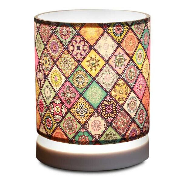 Φωτιστικό επιτραπέζιο Hassard Megapap ύφασμα/Mdf χρώμα πολύχρωμο/λευκό 15x16x22εκ.