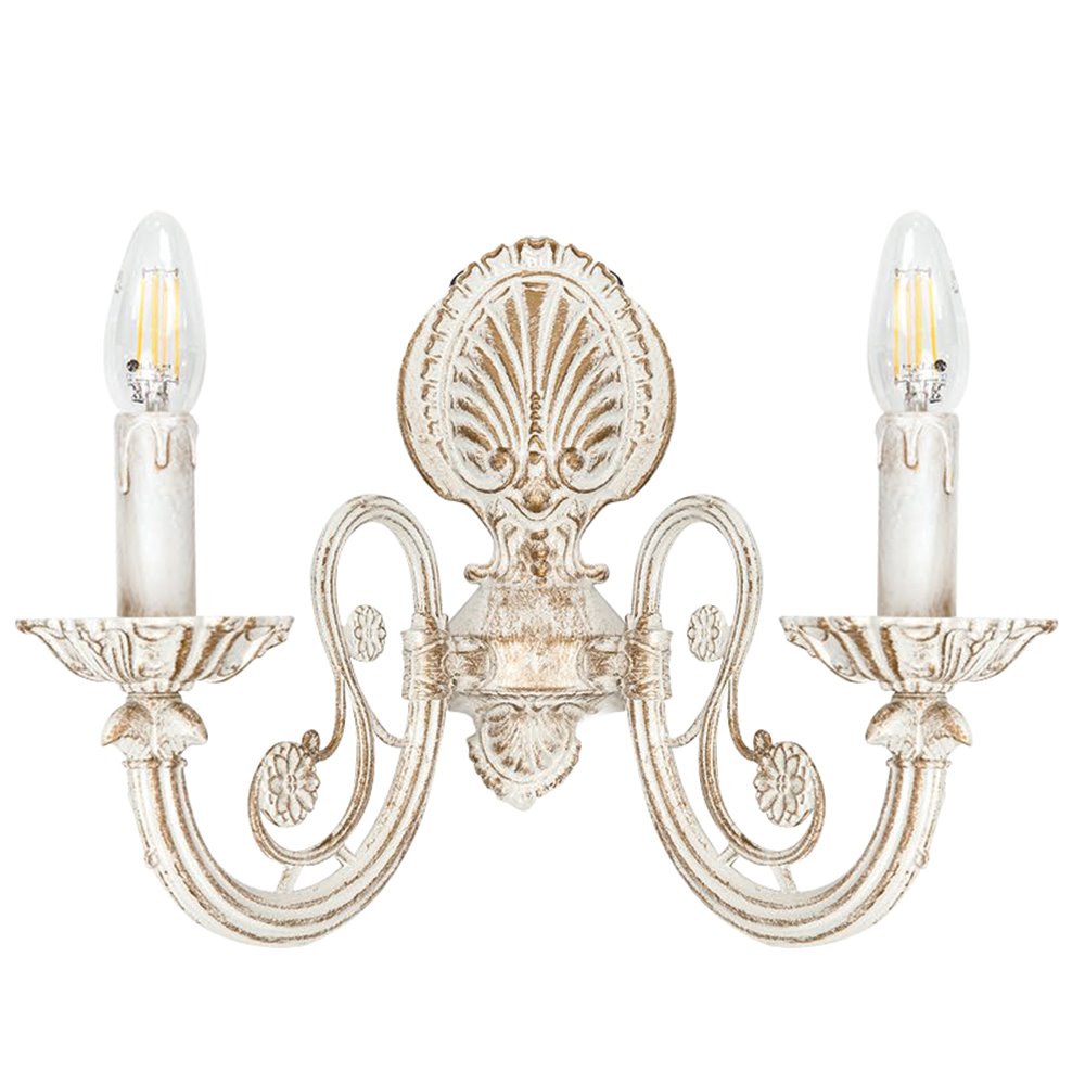 Απλίκα Επίτοιχη Διπλή, Λευκή Πατίνα διακοσμημένη με κρυσταλλάκια Inlight 43355-2