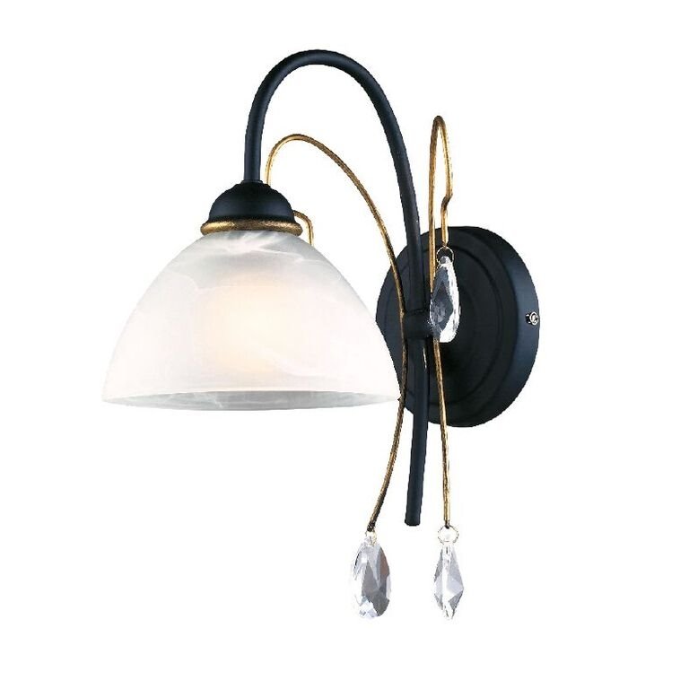 Απλίκα Μονόφωτη Μέταλλο Μαύρο ματ / Αντικέ Χρυσές /Κρυσταλλάκια / Αλαβάστρινο Λευκό Γυαλί ACA W39491