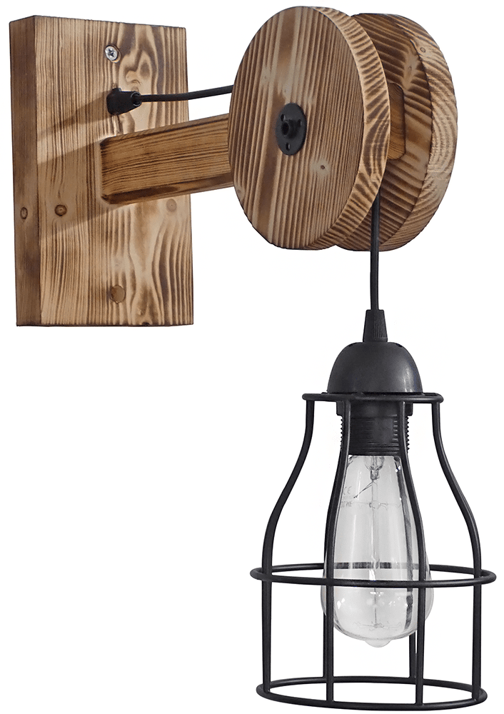 Απλίκα Μονόφωτη Τροχαλία Ξύλο Μέταλλο Πλέγμα Heronia Lighting R-300AP/FUN-10 30-0046