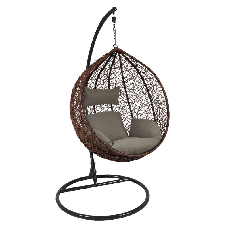 Ε6737,3 ISABEL Κρεμαστή Πολυθ.Steel Dark Grey/Wicker Brown/Μαξ.Καφέ ISABEL Κρεμαστή Πολυθρόνα - Κούνια Εξωτερικές Διαστάσεις : Φ105x203cm Κάθισμα (Καλάθι) : 105x73x114cm Ρυθμιζόμενο Ύψος Καθίσματος από 56cm έως 66cm Μεταλλικός Σκελετός Απόχρωση Σκούρο Γκρι Καλάθι (κάθισμα) : Μέταλλο/Wicker Απόχρωση Καφέ Περιλαμβάνονται : 2 Μαξιλάρια Απόχρωση Καφέ Μέγιστο Επιτρεπόμενο Βάρος: 170Kg Στιγμές χαλάρωσης στην βεράντα & στον κήπο σας Προέλευση : P.R.C.