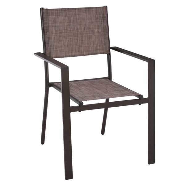 Πολυθρόνα εξωτερικού χώρου μεταλλική με textiline σε καφέ απόχρωση. Κατασκευασμένη για μεγάλη αντοχή στον ήλιο και στην βροχή. Διαστάσεις: 57x56x90 εκ. Διαστάσεις καθίσματος: 40x45 εκ. Διαστάσεις πλάτης: 46x31,5 εκ. Απόσταση ποδιών: 52x53 εκ. Ύψος μπρατσου: 62 εκ. Υψος καθίσματος: 45 εκ. Ύψος ποδιών: 42 εκ. Χρώμα μετάλλου: Καφέ Χρώμα textiline: Καφέ