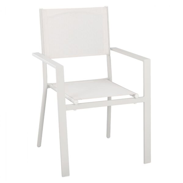 Πολυθρόνα εξωτερικού χώρου μεταλλική με textiline σε λευκή του πάγου απόχρωση. Κατασκευασμένη για μεγάλη αντοχή στον ήλιο και στην βροχή. Διαστάσεις: 57x56x90 εκ. Διαστάσεις καθίσματος: 40x45 εκ. Διαστάσεις πλάτης: 46x31,5 εκ. Απόσταση ποδιών: 52x53 εκ. Ύψος μπρατσου: 62 εκ. Υψος καθίσματος: 45 εκ. Ύψος ποδιών: 42 εκ. Χρώμα μετάλλου: Λευκό Πάγου Χρώμα textiline: Λευκό Πάγου