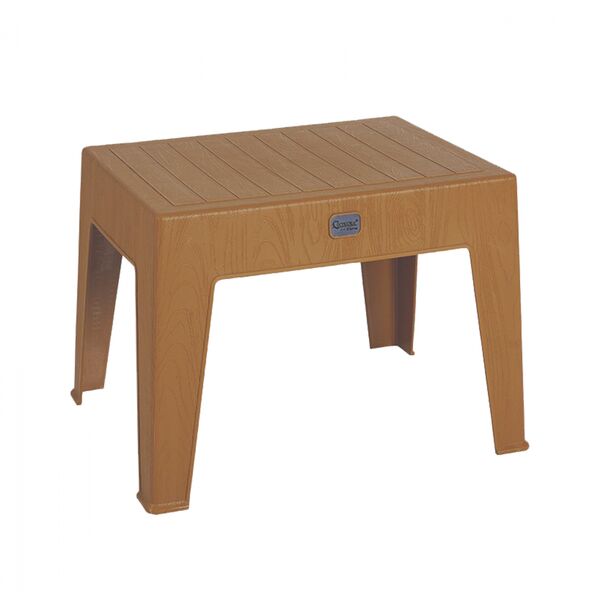 Τραπεζάκι πολυπροπυλενίου με 4 πόδια, σε απόχρωση ξύλου. Κατάλληλο για χρήση σε εσωτερικούς αλλά και εξωτερικούς χώρους. Διαστάσεις: 55x40x43,5 εκ.