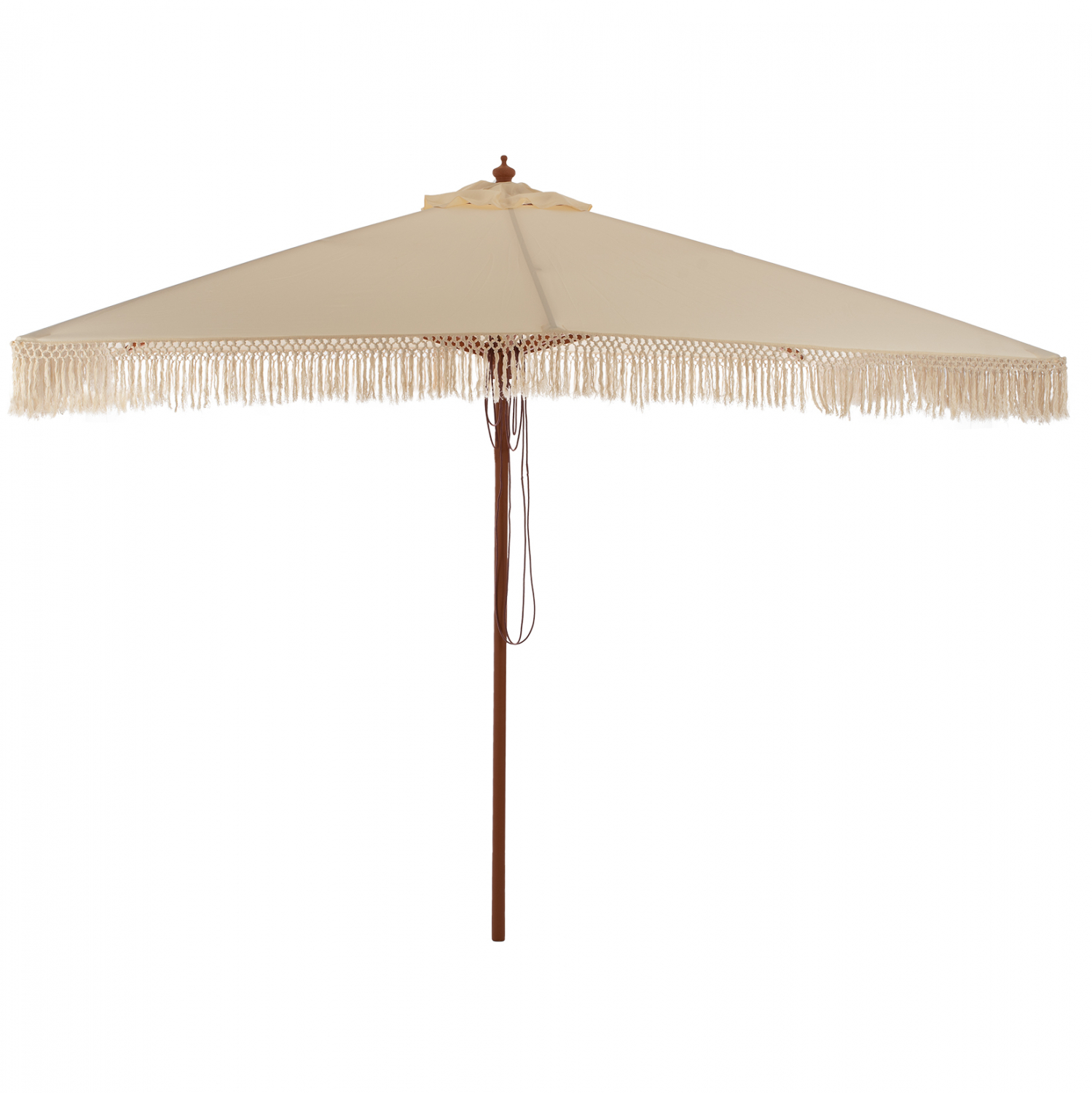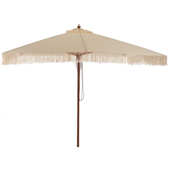 Ομπρέλα 3x3μ. με ξύλινο σκελετό, 8 ακτίνες και διπλή τροχαλία, με κρόσια ΜΑΚΡΑΜΕ, σε μπεζ απόχρωση. Η ξύλινη ομπρέλα HM5778.01 είναι μια τέλεια και απαραίτητη επιλογή για τις καλοκαιρινές και ηλιόλουστες μέρες. Χρησιμοποιείται ευρέως σε κήπους, παραλίες, αίθρια όπως καφέ, εστιατόρια και πισίνες. Οι 8 ακτίνες και ο μονοκόμματος σκελετός καθιστούν την ομπρέλα πιο σταθερή. Διαστάσεις: 3.00x3.00x2.50 εκ. Η ομπρέλα ενδείκνυται για χρήση με αίθριο καιρό. Σε άστατο καιρό η ομπρέλα πρέπει να βρίσκεται κλειστή. Η ομπρέλα δεν δέχεται επιδιόρθωση.
