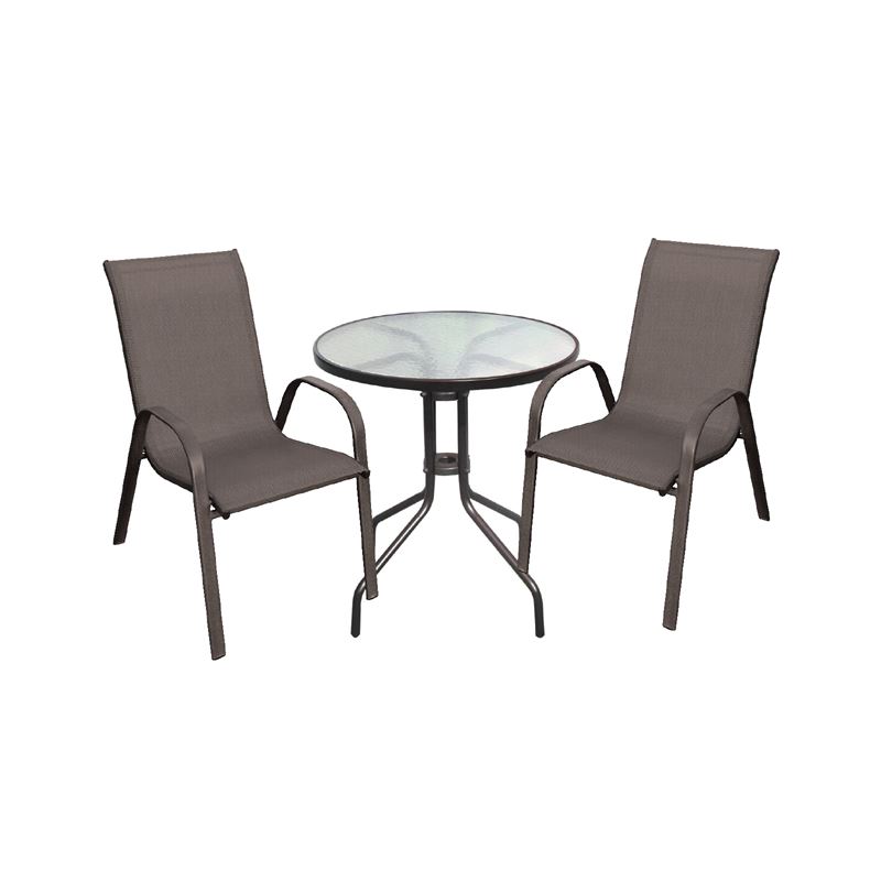 Ε270,6S RIO Set (Τραπ.Φ60+2 Πολυθρ) Μεταλ.Καφέ/Textilene Καφέ RIO Σετ Κήπου - Βεράντας Αποτελείται από : *** Τραπέζι Ε2400 BALENO Τραπέζι Φ60cm Μεταλλικό Καφέ *** 2 τεμάχια Πολυθρόνες Ε270,6 RIO Πολυθρόνα Μεταλλική Καφέ/Textilene Καφέ Προέλευση : P.R.C.