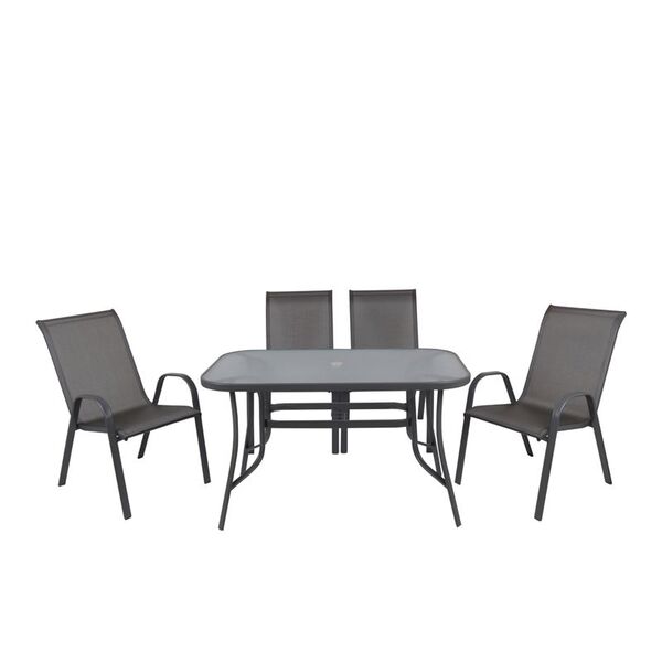 RIO Set Τραπεζαρία Κήπου Steel Ανθρακί-Textilene Γκρι : Τραπέζι + 4 Πολυθρόνες-Ε250,3-Μέταλλο/Textilene-1τμχ- Table:120x70x71 Armch:55x75x95