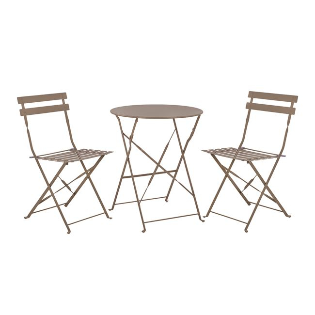 Ανανεώστε το μπαλκόνι σας και αλλάξτε διάθεση με ένα σετ τραπεζαρίας τριών τεμαχίων. Χρώμα: φυστικί Διαστάσεις Καρέκλας: 41x44x81 εκ. Διαστάσεις καθίσματος: 41x36 εκ. Διαστάσεις πλάτης: 41x12 εκ. Ύψος καθίσματος: 44 εκ. Ύψος ποδιών: 42 εκ. Απόσταση ποδιών: 33x40 εκ. Διαστάσεις Τραπεζιού: 60x71 εκ. Ύψος ποδιών: 70 εκ. Απόσταση ποδιών: 41,50x46 εκ. Το προϊόν διατίθεται σε μία συσκευασία 3 τεμ. [ 2 καρέκλες + 1 τραπέζι] ασυναρμολόγητο.