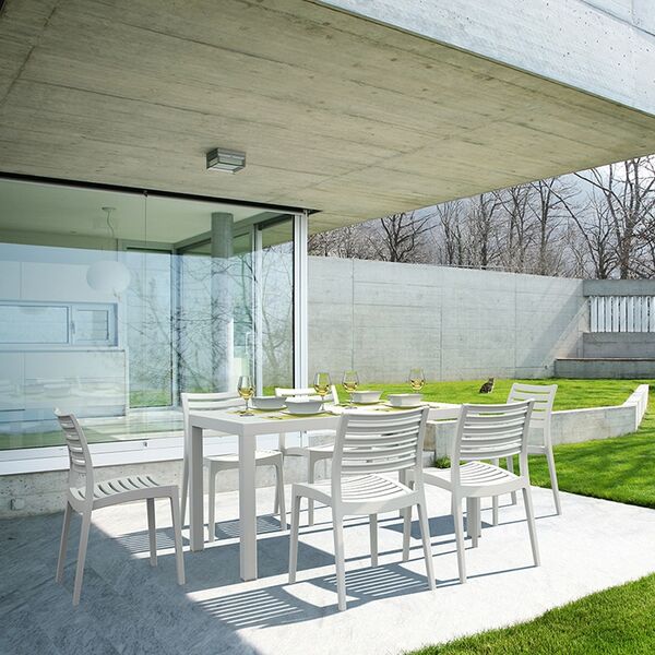 Set Ares τραπέζι 140X80 με 6 καρέκλες Ares σε χρώμα white του οίκου Siesta.Κατασκευασμένα από πολυπροπυλένιο για απόλυτη αντοχή.Ένα set με ιδιαίτερο desing και άριστη κομψότητα ιδανικό για επαγγελματική και για οικιακή χρήση.Κατάλληλο για εσωτερικό και εξωτερικό χώρο.Διατίθεται σε χρώματα white,taupe,dark grey,teak,brown και black.
