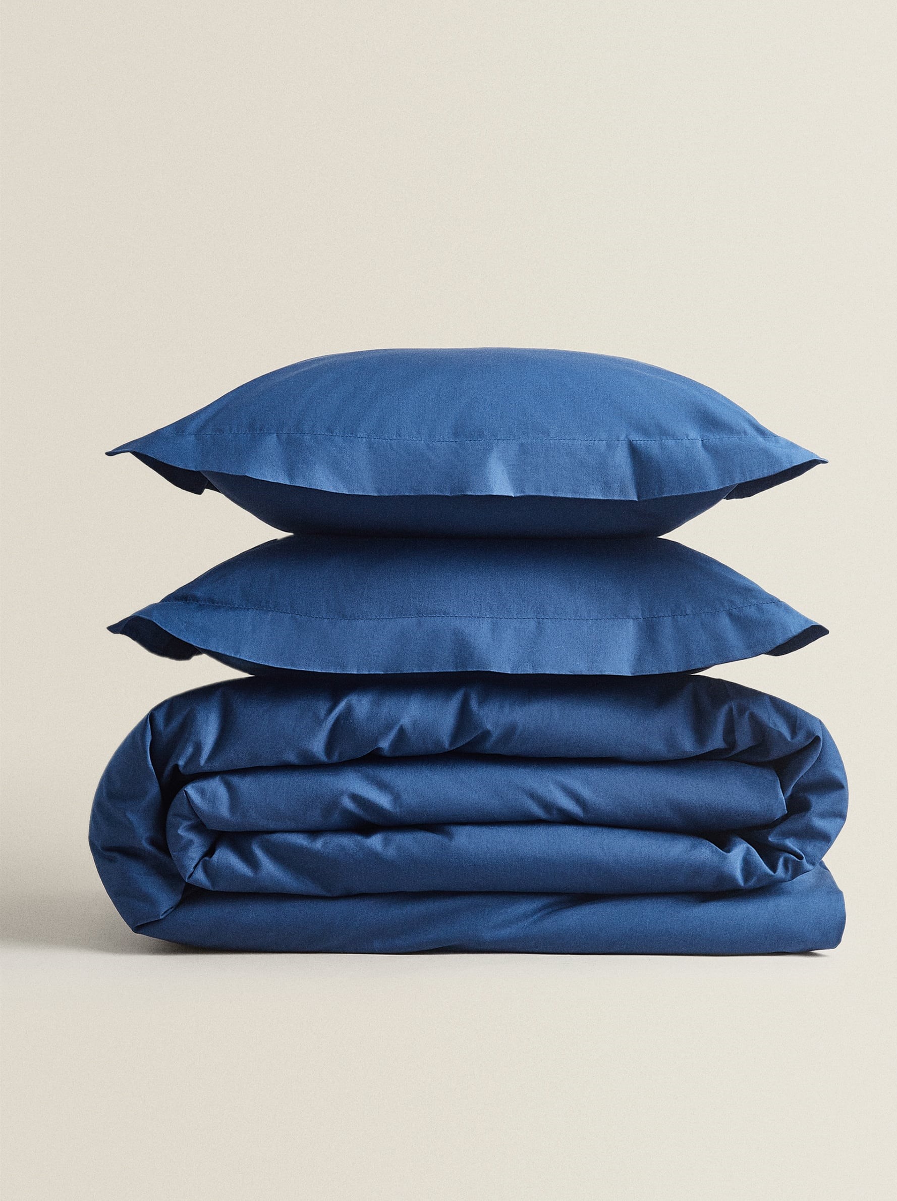 Monochrome - Σετ παπλωματοθήκηΧρώμα : Μπλε ΡαφΠεριέχει : 1 Παπλωματοθήκη (160Χ250) + 2 Μαξιλαροθήκες (50Χ70) Ποιότητα : 100% Οργανικό βαμβάκι