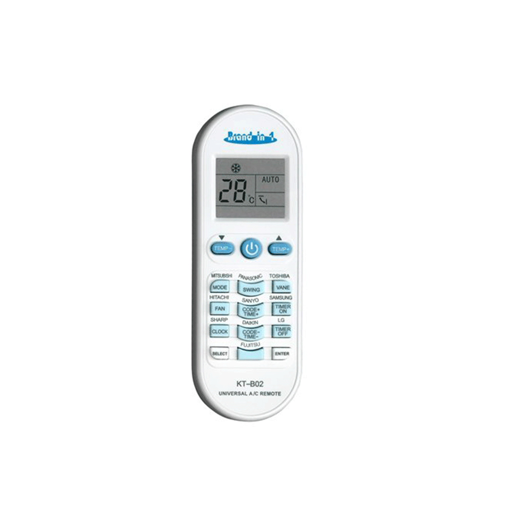 KT-B02 Οδηγίες χρήσης Universal τηλεχειριστήριο για κλιματιστικά.Οθόνη LCD, 2000 κωδικοί κλιματιστικών, εύκολος προγραμματισμός για τις πλέον γνωστές μάρκες κλιματιστικών, ένδειξη ώρας και λειτουργία χρονοδιακόπτηΛειτουργία αυτόματης αναζήτησης κωδικού ή απευθείας εισαγωγής κωδικού.