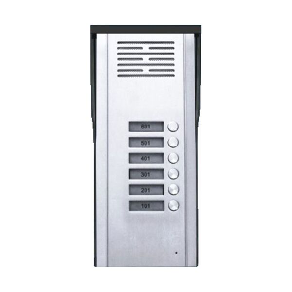 RL-6AΜπουτονιέρα 6 πλήκτρων.Φινίρισμα αλουμινίου,Ανθεκτική στην υγρασία (Για να λειτουργήσει χρειάζεται θυροτηλέφωνα και τροφοδοτικό). Συνδεσμολογία:Από μπουτονιέρα προς θυροτηλέφωνα 4 αγωγοί + επιστροφή από κάθε θυροτηλέφωνο. Από μπουτονιέρα προς τροφοδοτικό 3 αγωγοί.Από τροφοδοτικό προς κυπρί 2 αγωγοί