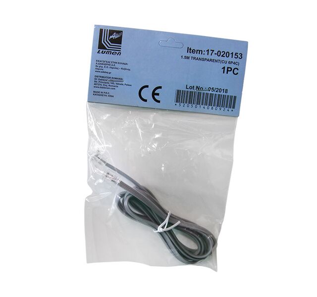 Καλώδιο Προέκτασης Τηλεφώμου 6p4c Πλακέ 1,5μ Διάφανο 17-020153 Adeleq