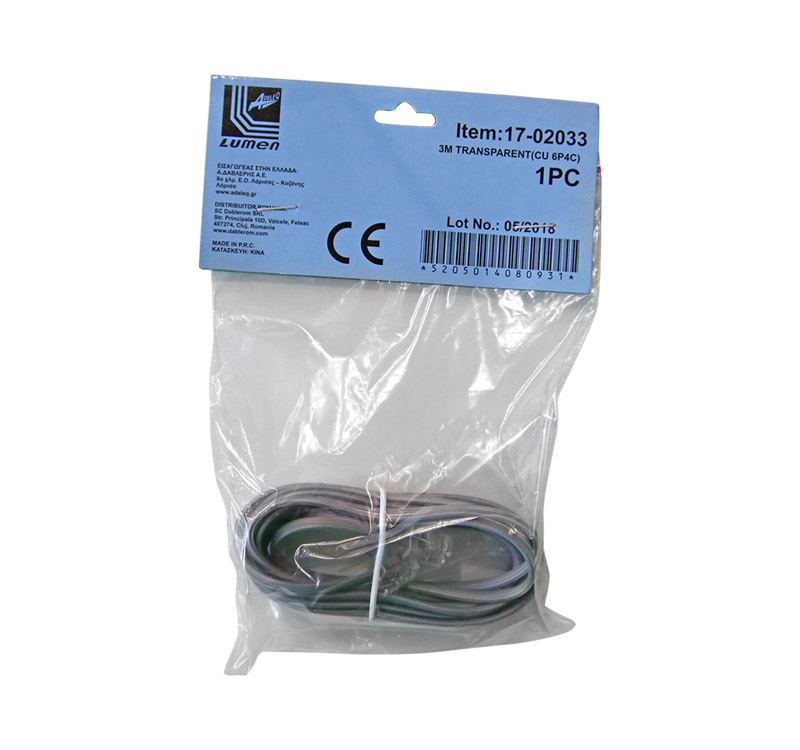 Καλώδιο Προέκτασης Τηλεφώνου 6p4c Πλακέ 3μ Διάφανο 17-02033 Adeleq