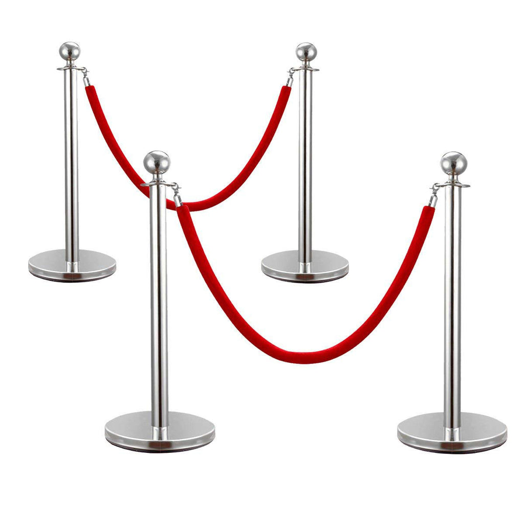 Σετ με 4 διαχωριστικά κολωνάκια ασημί με σφαίρα στην κορυφή και 2 κόκκινα βελούδινα σχοινιά 1.5m