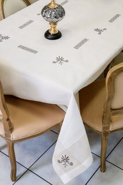 Μαίανδρος - Τραπεζομάντηλο λευκό λινό με κέντημα 150Χ220cm 1590Χρώμα : Γκρι Μπεζ Διάσταση: 150χ220cmΠοιότητα : Λινό CODE : 1590