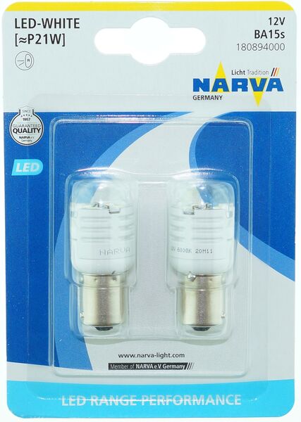 NARVA LED-WHITE PERFORMANCE P21W 12V BA15s (180894000) 2τμχ