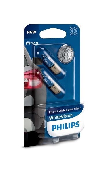 PHILIPS H6W 12V 6W BAX9s WhiteVision Xenon Effect (12036WHVB2) 2τμχ