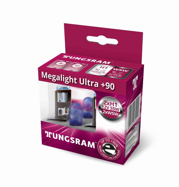TUNGSRAM H1 12V 55W P14.5s MegaLight Ultra +90% ΠΕΡΙΣΣΟΤΕΡΟ ΦΩΣ (50310XU)+W5W 2τμχ