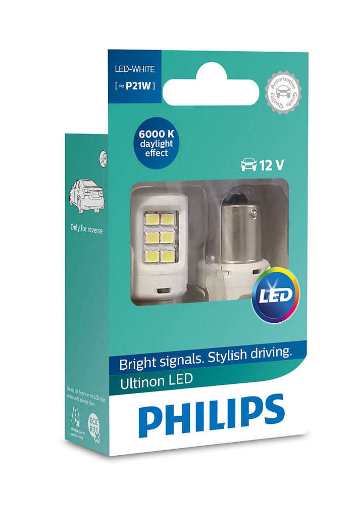PHILIPS P21W 12V 1,95W BA15s LED WHITE Ultinon (11498ULWX2) 2τμχ