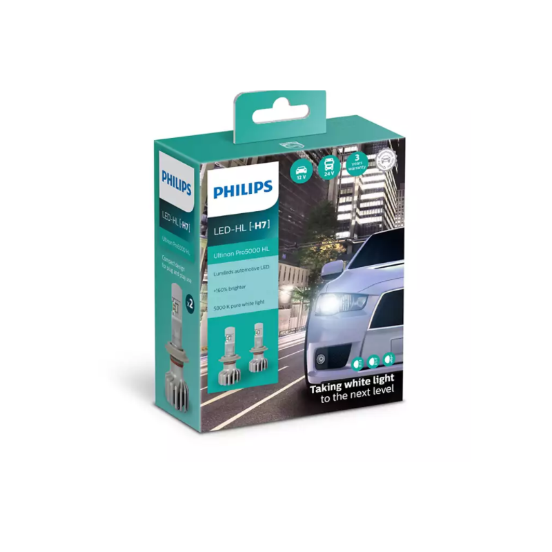 Λαμπτήρες Philips Ultinon Led Pro5000 με 160% περισσότερο φως. Αυτές οι λάμπες με 5800Κ θερμοκρασία χρώματος έχουν μεγάλη διάρκεια ζωής και εξασφαλίζουν ασφαλέστερη και πιο άνετη οδήγηση.