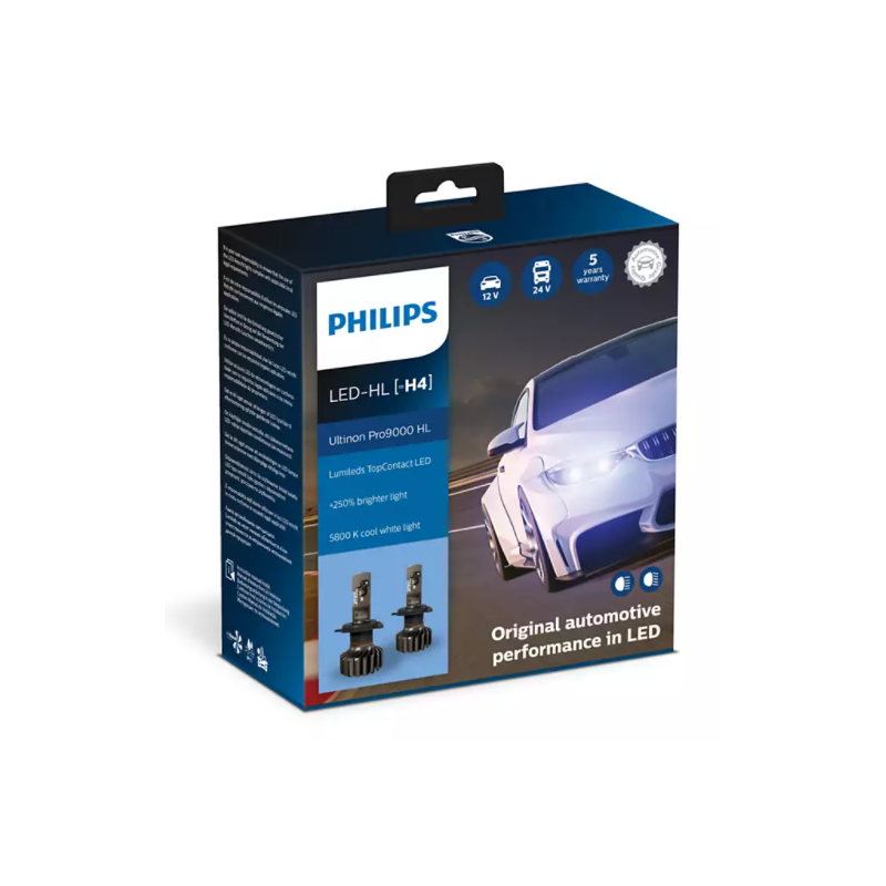 PHILIPS H4 Ultinon Pro9000 HL Led 13.2V 18W +250% Περισσ. Φως 5800K 2τμχ 11342U90CWX2 5 Έτη* Εγγύηση Philips