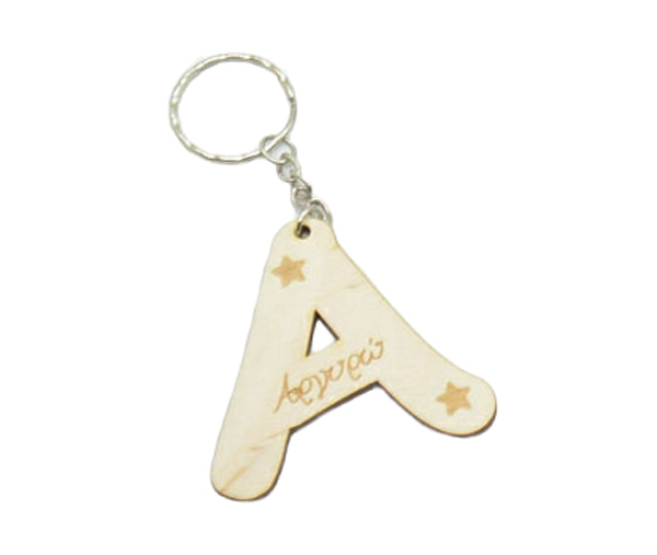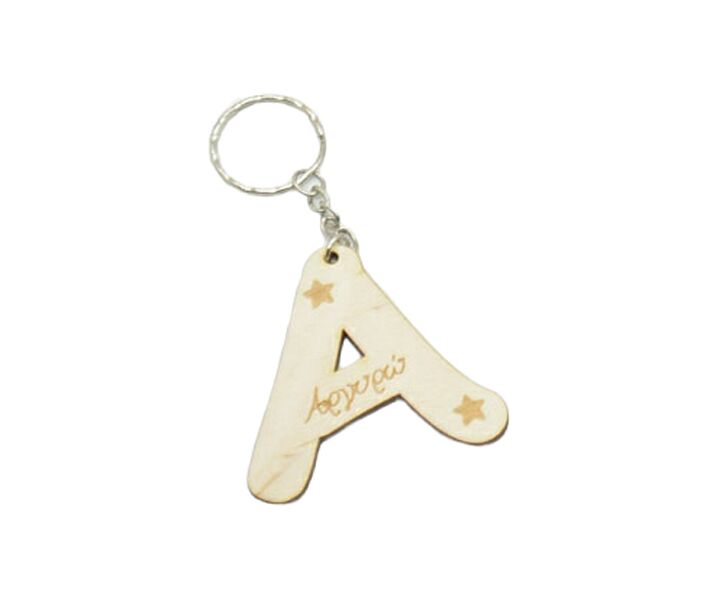 Ξύλινο Μπρελόκ με το μονόγραμμα και το όνομα του παιδιού με αστέρια. Διάσταση 12 εκ και μονόγραμμα 6 εκ. Μπορούν με επιπλέον χρεώση να γίνουν με διάφορα ονόματα.