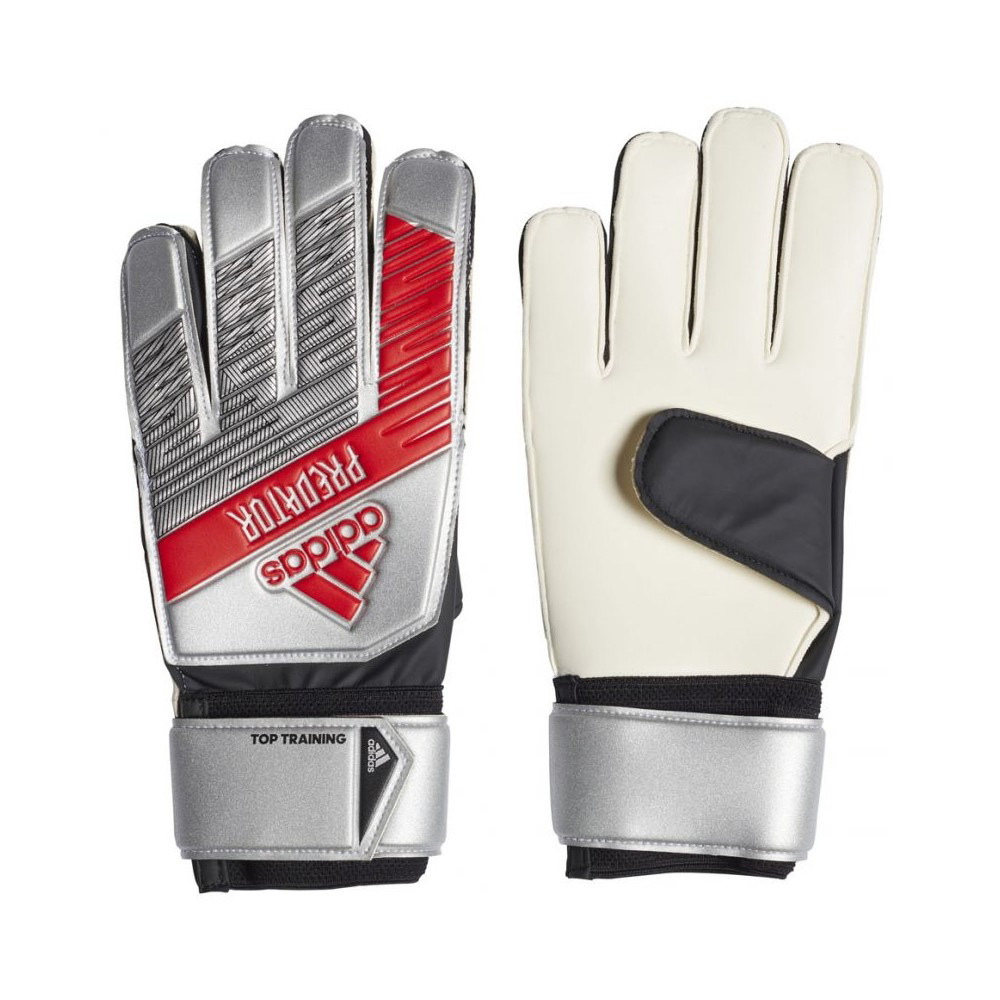 PREDATOR TOP TRAINING GLOVES ΕΠΕΝΔΕΔΥΜΕΝΑ ΓΑΝΤΙΑ ΠΡΟΠΟΝΗΣΗΣ ΓΙΑ ΝΑ ΕΧΕΙΣ ΤΟΝ ΕΛΕΓΧΟ. Είναι η δική σου περιοχή. Δείξ΄το. Σχεδιασμένα για προπόνηση και σουτάκια, αυτά τα γάντια τερματοφύλακα έχουν επένδυση 3 χιλ. στην παλάμη που απορροφά τους κραδασμούς. Το αντιολισθητικό latex εξασφαλίζει καλύτερο κράτημα της μπάλας σε κάθε συνθήκη. Ο σχεδιασμός στα δάχτυλα προσφέρει άνετη εφαρμογή. ΛΕΠΤΟΜΕΡΕΙΕΣ Κύριο μέρος: πολυεστέρας / πολυουρεθάνη. Παλάμη: καουτσούκ Λάτεξ Soft Grip Pro για καλό κράτημα και ασύγκριτη απορρόφηση κραδασμών Positive cut για άνετη εφαρμογή Ελαστικό λουράκι για τέλεια εφαρμογή και υποστήριξη του καρπού Λουράκι καρπού πλήρους περιστροφής