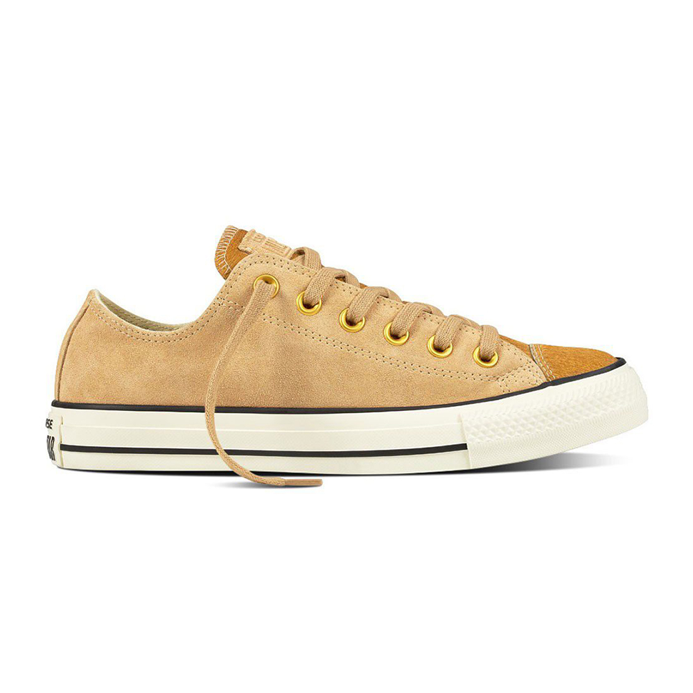 Το όνομα των Converse Chuck Taylor προέρχεται από έναν παίκτη του μπάσκετ ονόματι Charles "Chuck" Taylor ο οποίος εντάχθηκε σε μια ομάδα την οποία εκείνο τον καιρό σπονσόραρε η Converse και το όνομα της ήταν "Converse All Stars". Λίγο καιρό μετά, τα All Stars καθιερώθηκαν στα γήπεδα του μπάσκετ και έγιναν η No1 επιλογή πολλών επαγγελματιών παιχτών. Τότε, τα Converse Chuck Taylor προχώρησαν ένα βήμα παραπέρα και έγιναν το κλασικό αθλητικό παπούτσι για διάφορες δραστηριότητες και αθλήματα. Η χρήση τους ήταν τόσο πολύπλευρη, που τα χρησιμοποίησαν από nτους αθλητές των Ολυμπιακών αγώνων... μέχρι τους Αμερικανούς στρατιώτες στον 2ο παγκόσμιο πόλεμο (κατά την διάρκεια της εκπαίδευσής τους). Σήμερα, τα All Stars είναι ακόμα πιο δημοφιλή, αλλά όχι σαν αθλητικό παπούτσι - σαν ένα από τα πιο στιλάτα και διαχρονικά παπούτσια καθημερινής χρήσης που κατασκευάστηκαν πότε. Η έκδοση Pony Hair ανανεώνει τα αγαπημένα σταράκια με άνω τμήμα από φυσική τρίχα από πόνυ καθώς και υψηλής ποιότητας suede δημιουργώντας μια ξεχωριστή πρόταση για κάθε στιγμή της ημέρας. Άνω τμήμα από φυσική τρίχα από πόνυ καθώς και υψηλής ποιότητας suede. Κλασικό κάλυμμα δαχτύλων από χυτή σόλα καουτσούκ. Λογότυπα All Star πίσω στην σόλα και στην εσωτερική πλευρά. Δένονται στο ψηλότερο σημείο του παπουτσιού στεθροποιόντας το πόδι μέσα στο παπούτσι. *Το μεγεθολόγιο της Converse είναι ένα νούμερο μικρότερο σε σχέση με άλλες εταιρίες (πχ αν στα Nike φοράτε 40, στα Converse φοράτε 39)